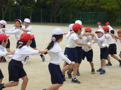 2−3 運動場で、しっぽとりをしていました。