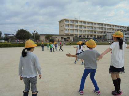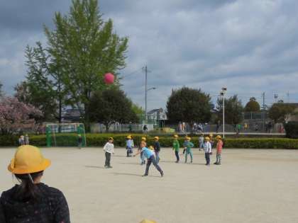 朝、1年生対4年生でドッジボールをしていました。1年生もなかなか上手です。