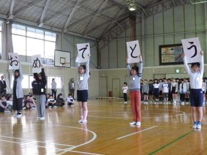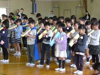 1年生を迎えて、各学年が、合唱・クイズ・合奏を行いました。どれも、1年生の子を思う気持ちが溢れていました。