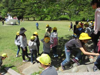 素晴らしい天気に恵まれ、無事に春の遠足へ出かけることができました。電車で定光寺駅まで行き、更に約1kmの山道を歩きました。公園に着いてからは、お弁当やお菓子を食べたり、思い切り遊んだりしました。みんなで仲良く遊ぶことができましたね。