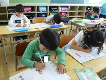 2の1は、名前ペンや鉛筆を使って、書写を行っていました。