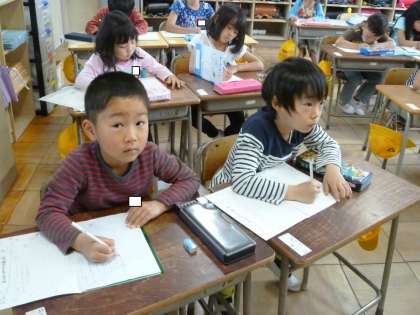 1の1は、連絡帳の書き方を習っていました。