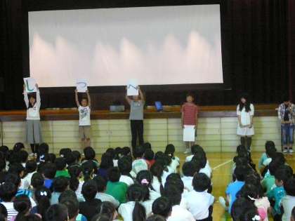 本日から、図書室が開館になります。その前に図書委員会の子ども達から、貸出や図書室の使い方についてのお知らせがありました。図書委員が、とてもわかりやすく説明していたので、全員が静かに話を聞いていました。