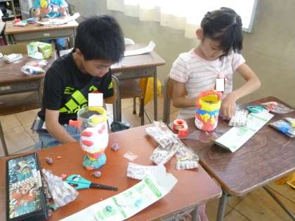 3の1は、図工で紙粘土の工作をしていました。どの子も自分の作品のがんばったところを先生に伝えていました。