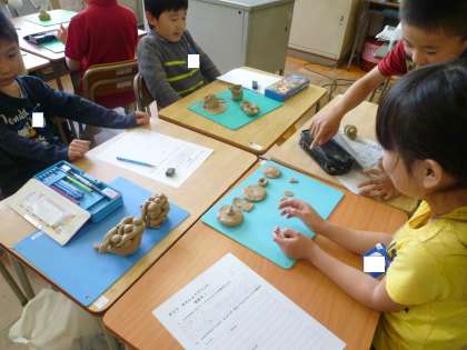 2の3は、図工で作った粘土の作品の鑑賞をしていました。