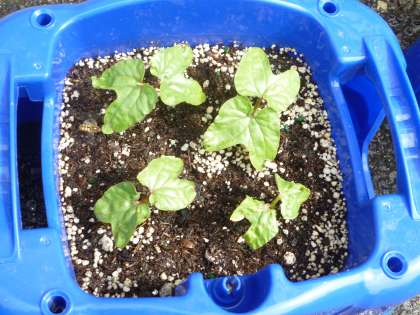 朝の念入りな水やりのおかげで、1年生は「アサガオ」のふたばがでてきました。子ども達は、いくつでているかを競っていました。