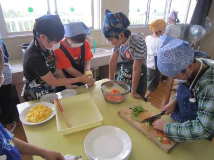 6年生 調理実習 公開日 2017/05/17 更新日 2017/05/17 6年 家庭科の調理実習で、スクランブルエッグと野菜炒めを作りました。「炒める」という調理は初めてでしたが、グループの友達と協力しながら、手早く進めることができました。野菜が苦手な子も、自分で作った野菜炒めは最後まで食べられました。この経験を生かして、ご家庭でも「炒める」料理にチャレンジしてほしいですね。