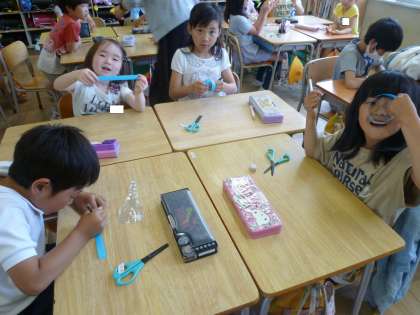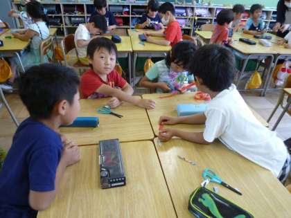 2の2は、算数の授業で、テープの長さを予想してはさみで切っていました。
