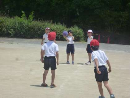 授業の様子「片手で投げよう」 公開日 2017/05/22 更新日 2017/05/22 学校の窓 2の1は、体育の授業でボール遊びをしていました。片手でドッジボールが投げれるように、がんばっていました。