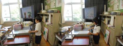 2年生が実物投影機を使って上手に発表していました。普段からよく使っているからですね。