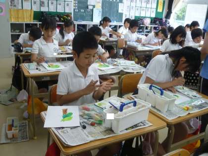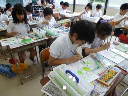 5の1は、図工で、筆の使い方に気を付けながら、木を描いていました。