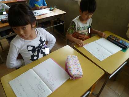 2の1は、国語の授業で、聞き方について学習していました。正しい姿勢で聞いていました。