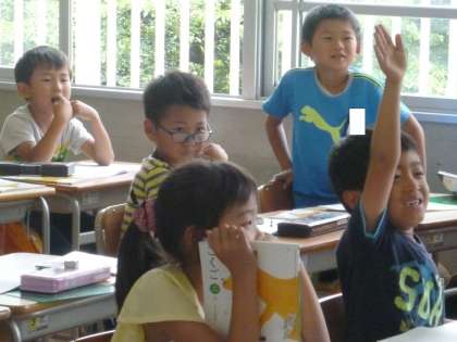 2の1は、国語で言葉について、学習していました。同じ読み方の言葉を発表していました。