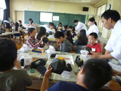 土曜チャレンジ・アップ教室 公開日 2017/06/03 更新日 2017/06/03 学校の窓 6月3日の土曜チャレンジ・アップ教室は、「プラネタリウムを作ろう」でした。初めての製作なので、多くの子ども達が参加していました。電球でキラキラ光って、きれいでした。