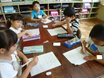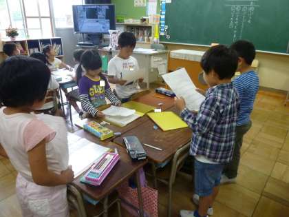 1の3は、生活科で行った学校探検の発表の練習をしていました。