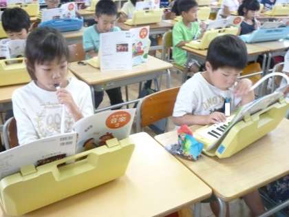 2の1は、音楽で鍵盤ハーモニカの練習をしていました。