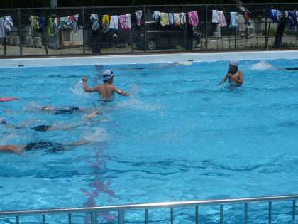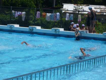 6年生は、水泳をしていました。天気はよいのですが、風があり少し寒そうでした。
