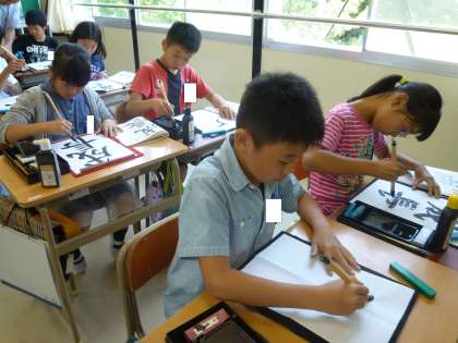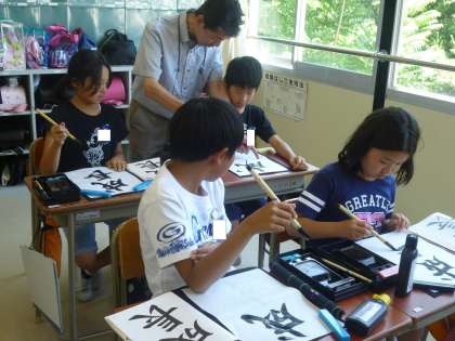 5の3は、書道の時間でした。書道講師の鵜飼乾山先生に教えていただきました。