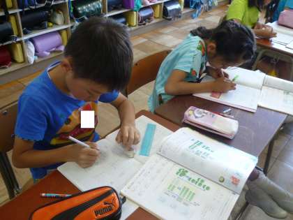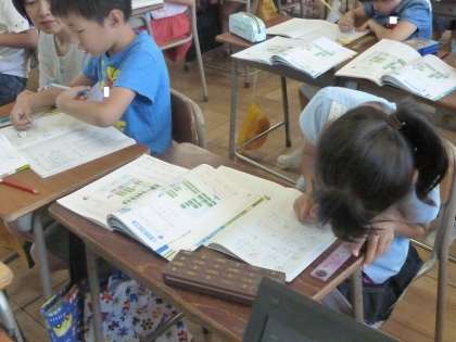 3の1は、算数の授業で、ひっ算の練習をしていました。ノートの書き方を覚えて、丁寧な字で書いていました。