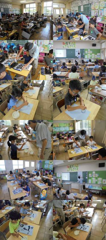 各クラス、年間に何度か書道の先生に来ていただき、指導をしてもらいます。今日は先生の筆さばきに歓声と拍手が起こっていました。