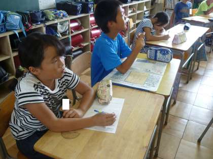 4の1は、国語で新聞の発表をしていました。聞いた後、発表者の良い点をまとめていました。