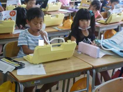 2の1は、音楽の時間に鍵盤ハーモニカのテストをしていました。