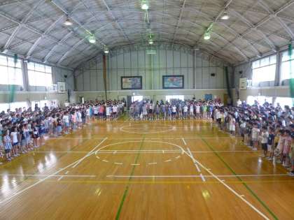 歌声集会 公開日 2017/07/03 更新日 2017/07/03 学校の窓 全校児童が、体育館に集まって「にじ」「夏色」を歌いました。どの子もしっかり歌詞を覚えて、一生懸命歌っていました。みんなの素晴らしい歌声が、響き渡りました。