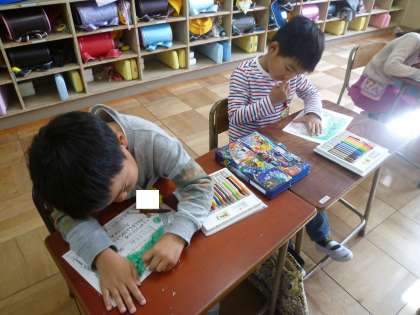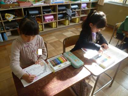 1の3は、生活科でおもちゃ祭りの招待状を書いていました。