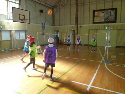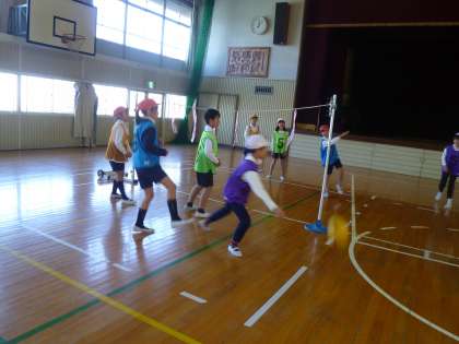 4の3は、体育でソフトバレーボールの練習をしていました。