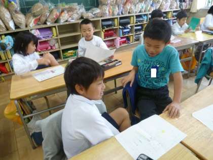 2の1は、国語でペアで、伝え合いをしていました。