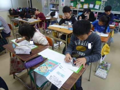 5の3は、図工で「ステンドカラーボックス」を作っていました。