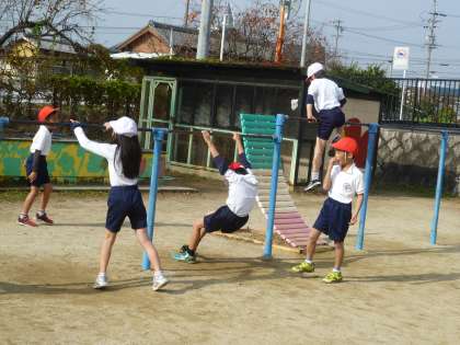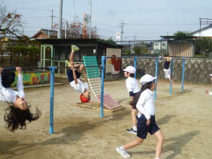 2の3は、体育で鉄棒の練習をしていました。