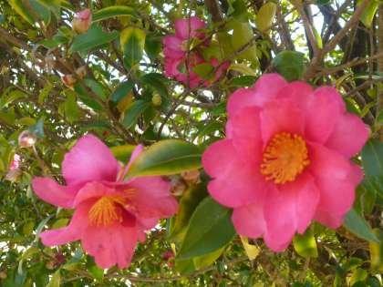 山茶花の花 公開日 2017/12/05 更新日 2017/12/05 学校の窓 今日(12月5日)は、天気が良く太陽のひざしは、とても温かですが、吹き抜ける風はとても冷たいです。校庭の山茶花の花が、揺れながら咲いていました。