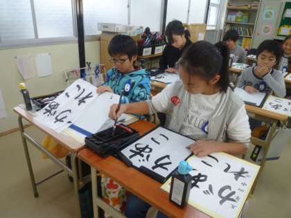 5の1は、書道の時間に「あこがれ」を練習していました。