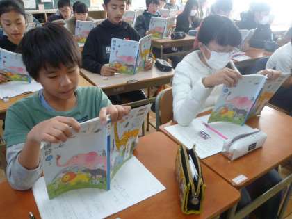 6の1は、国語で狂言の読み方を練習していました。