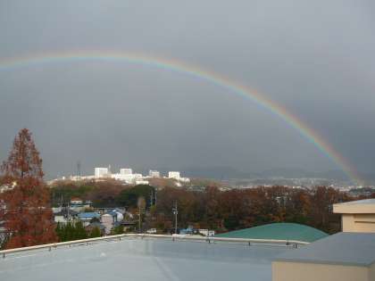 昨日(12月11日)雨の後、とても大きくて綺麗な虹が空にかかりました。その後、北風が強くなり、本日(12月12日)は、とても寒い1日になりました。
