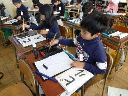 3の2は、書道の時間に清書をしていました。