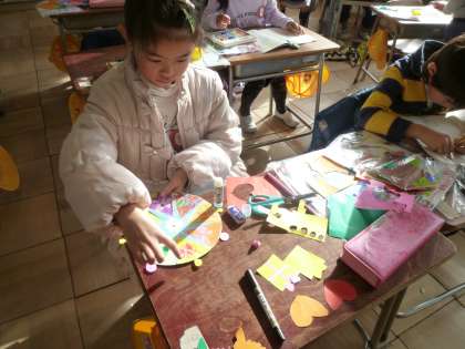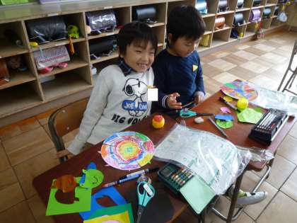 1の1は、図工で風車を作っていました。