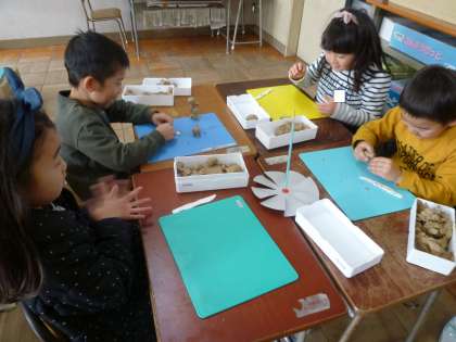 1の2は、図工で粘土の作品を作っていました。