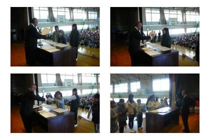 2学期終業式 公開日 2017/12/22 更新日 2017/12/22 学校の窓 終業式では、校長先生が「いー命」「かー感謝」について話をされました。その後、元気に校歌を歌いました。 表彰伝達の後、冬休みの生活と交通安全の話がありました。
