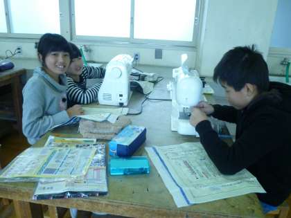 5の3は、家庭科でミシンを使って、エプロンを縫っていました。