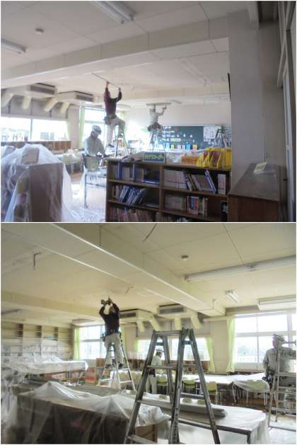 図書室照明工事 公開日 2018/02/02 更新日 2018/02/02 学校の窓 今日は図書室の照明工事をしていただいています。新しい器具に交換してもらえるので図書室が明るくなります。本が読みやすくなってうれしいですね。