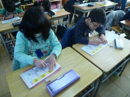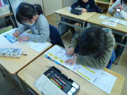 2の1は、国語で漢字の練習をしていました。