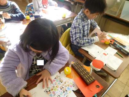 1の2は、図工で箱の作品を作っていました。