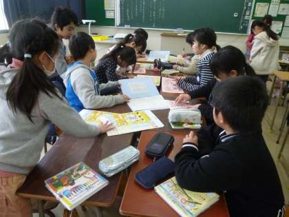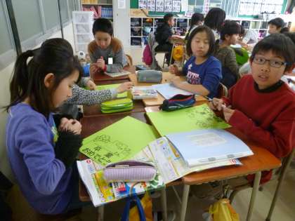 4年生と5年生が、6年生へのメッセージカードを集めて素敵なカードをつくりました。