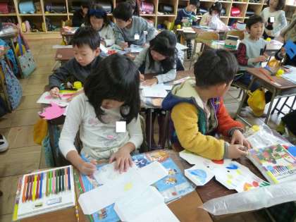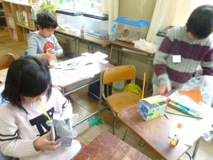 1の2は、図工で工作を作っていました。