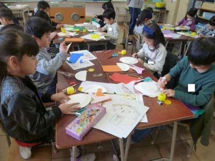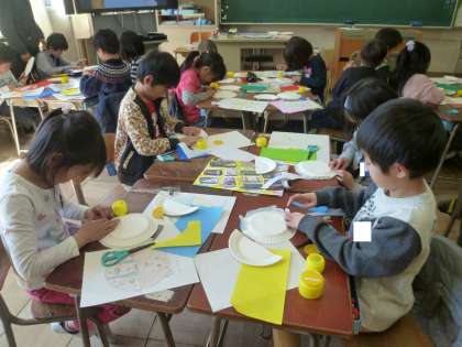 1の2は、新1年生に送る飾りを作っていました。