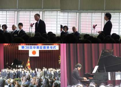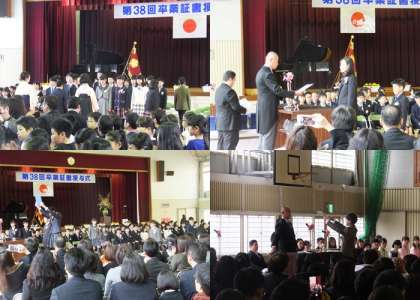 第38回卒業証書授与式 1 公開日 2018/03/22 更新日 2018/03/22 学校の窓 3月20日に第38回卒業証書授与式が行われました。厳かななかにも、子ども達の卒業式を立派にやり遂げたいという熱意が伝わる素晴らしい式になりました。