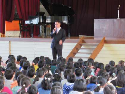 修了式の後、春休みの生活の過ごし方、自転車に乗る時はヘルメットを着用するようにと担当の先生から話を聞きました。