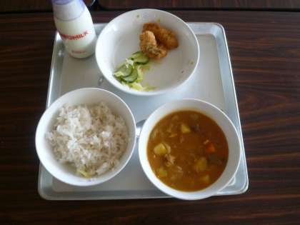 給食の献立 公開日 2018/04/18 更新日 2018/04/18 学校の窓 4月18日の給食の献立は、牛乳・麦ご飯・えがおのカレーシチュー・白身魚フリッター・ミニサラダ(2〜6年生)です。 今日から1年生の給食が始まります。